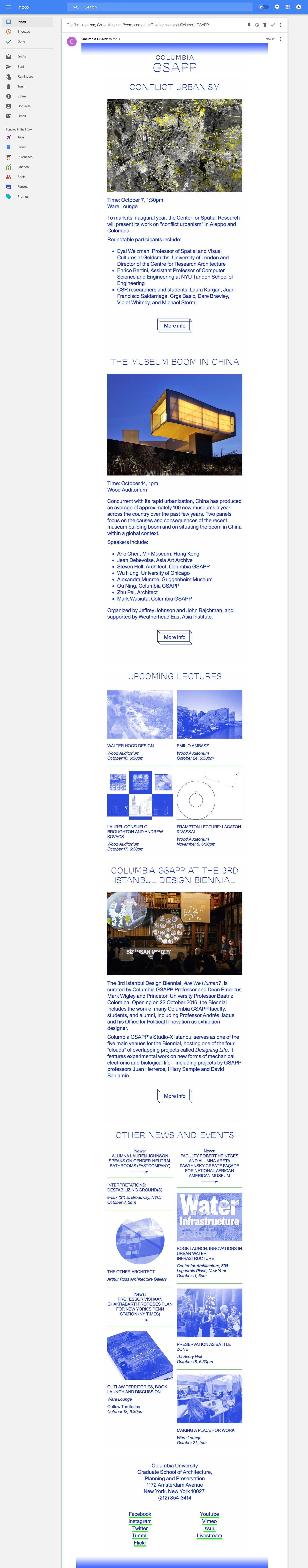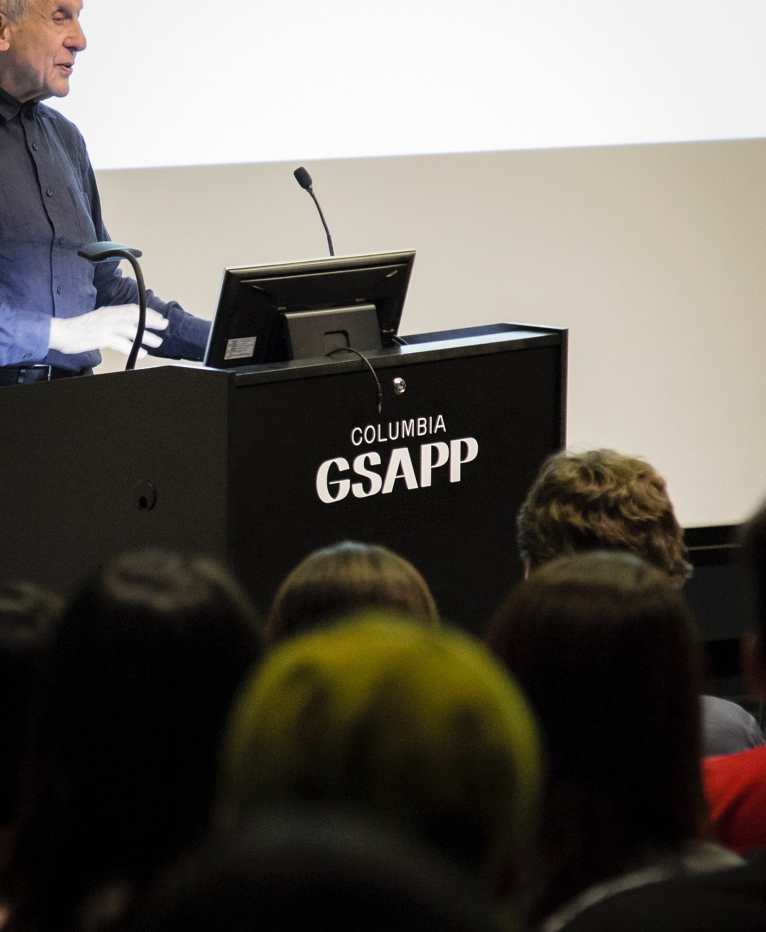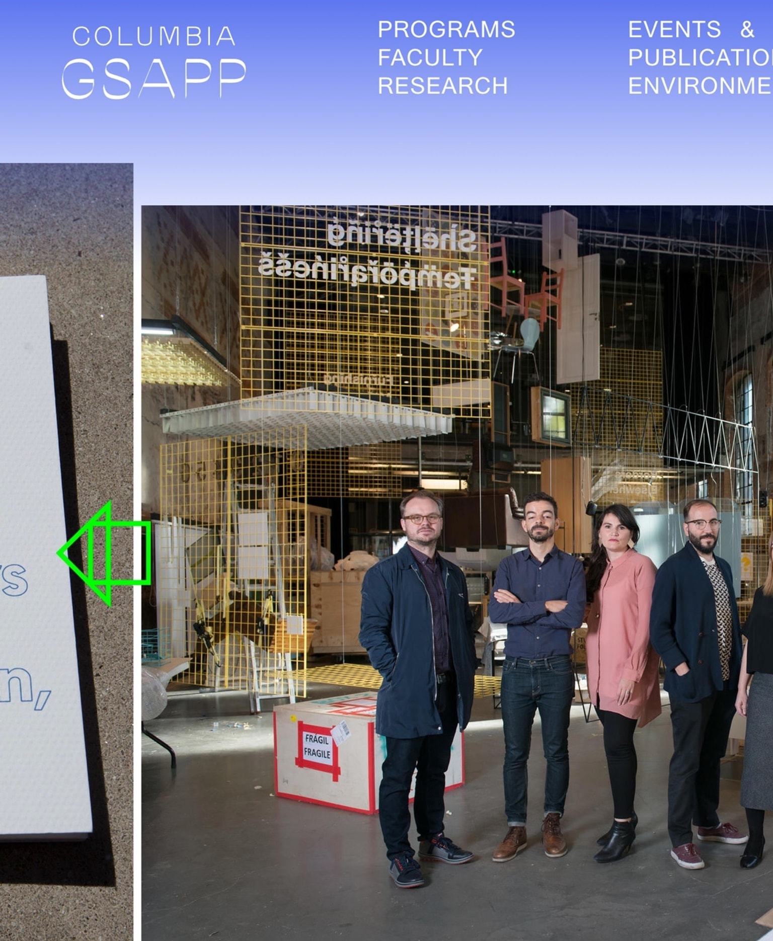 The wordmark for Columbia University’s Graduate School of Architecture, Planning and Preservation (Columbia GSAPP) takes its initial inspiration from a 1914 gift to the school: a sixteen-ton dark-green granite sphere, placed at the center of campus. The sphere, now removed, served as both a meeting place and as a large sundial displaying the local time.