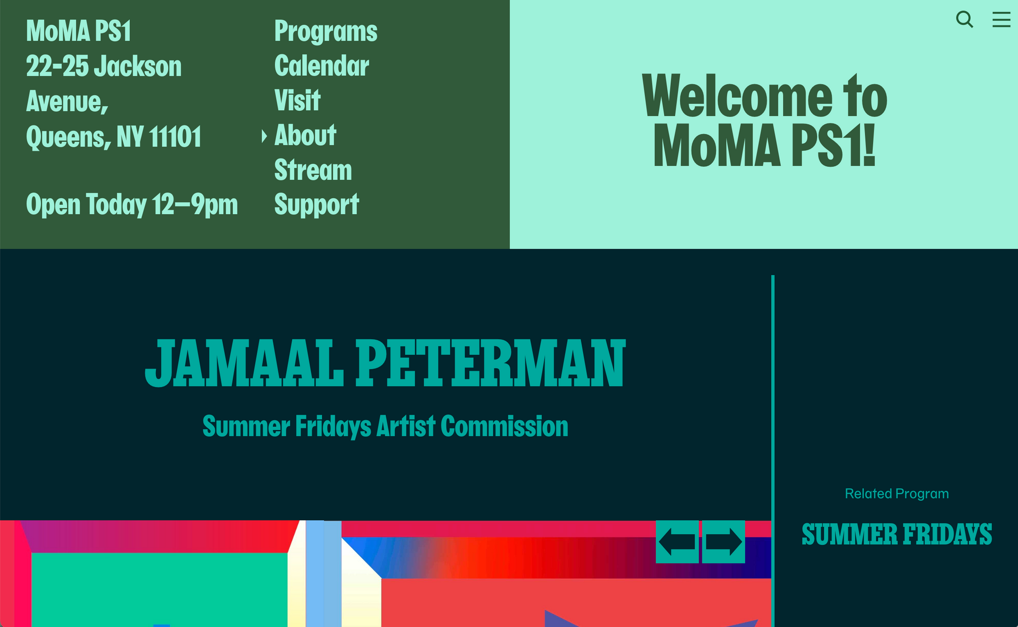 PS1’s new website, separates the contemporary art museum from MoMA’s website for the first time in several years, and introduces a new brand identity. The site expresses a whole new kind of non-hierarchical programming. Its homepage is an endless communication stream designed to amplify the voices of artists and community organizations – a platform as much as an institution. Each post on the homepage is the beginning of a larger page and set of relationships, providing numerous entry points to deeper journeys within PS1’s site and also leading outward from it.