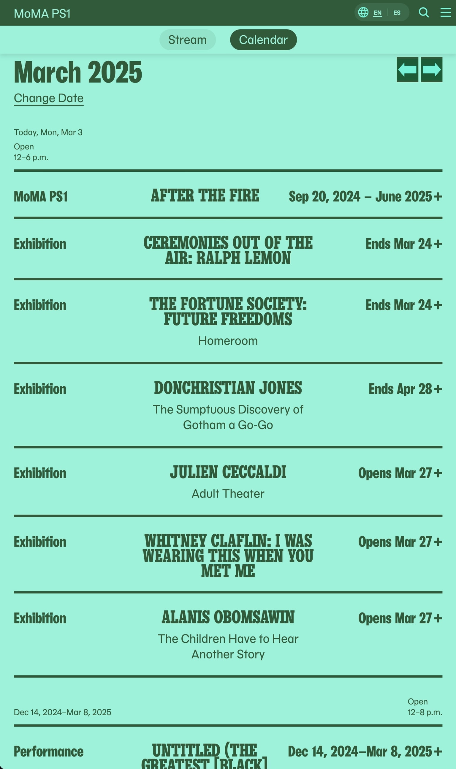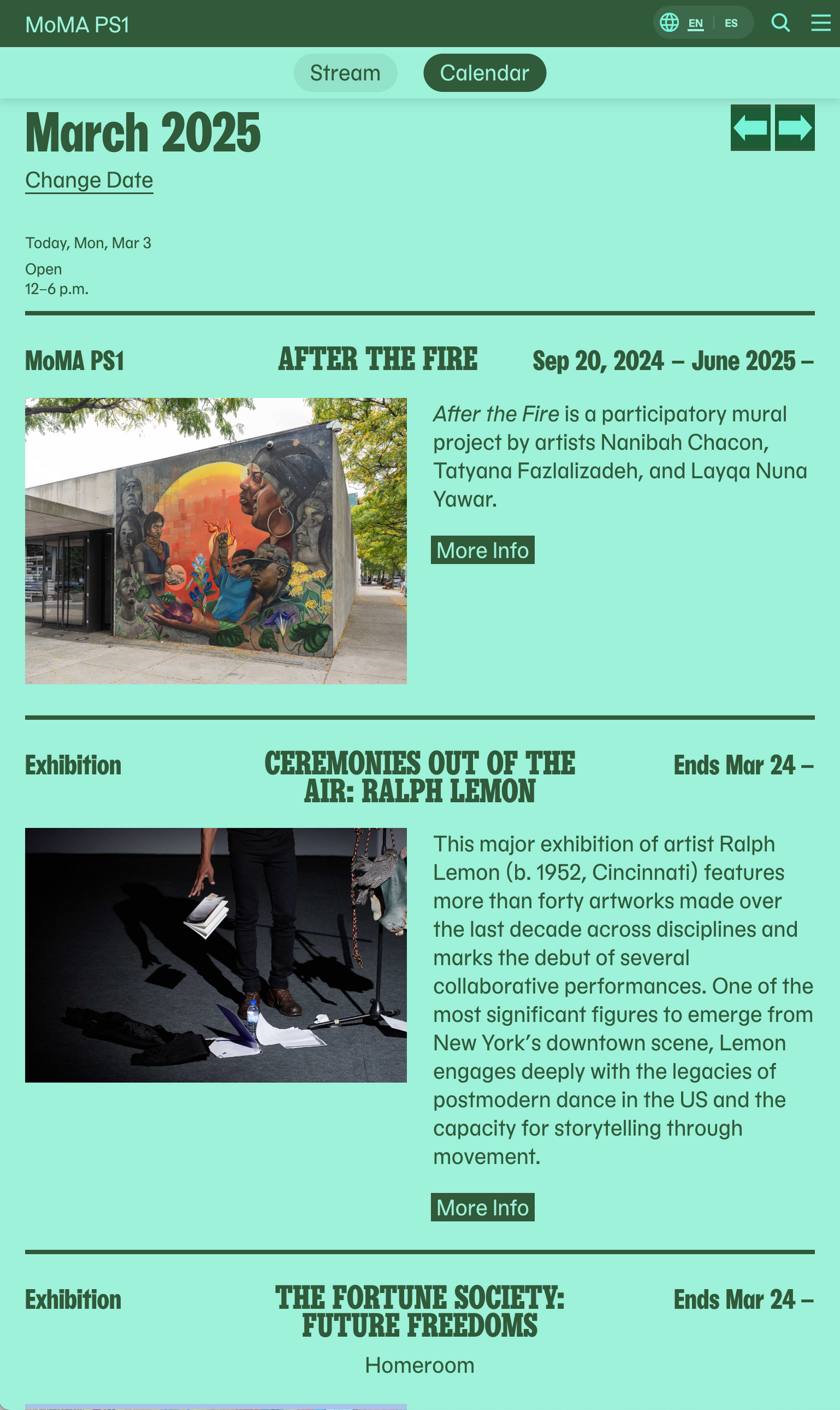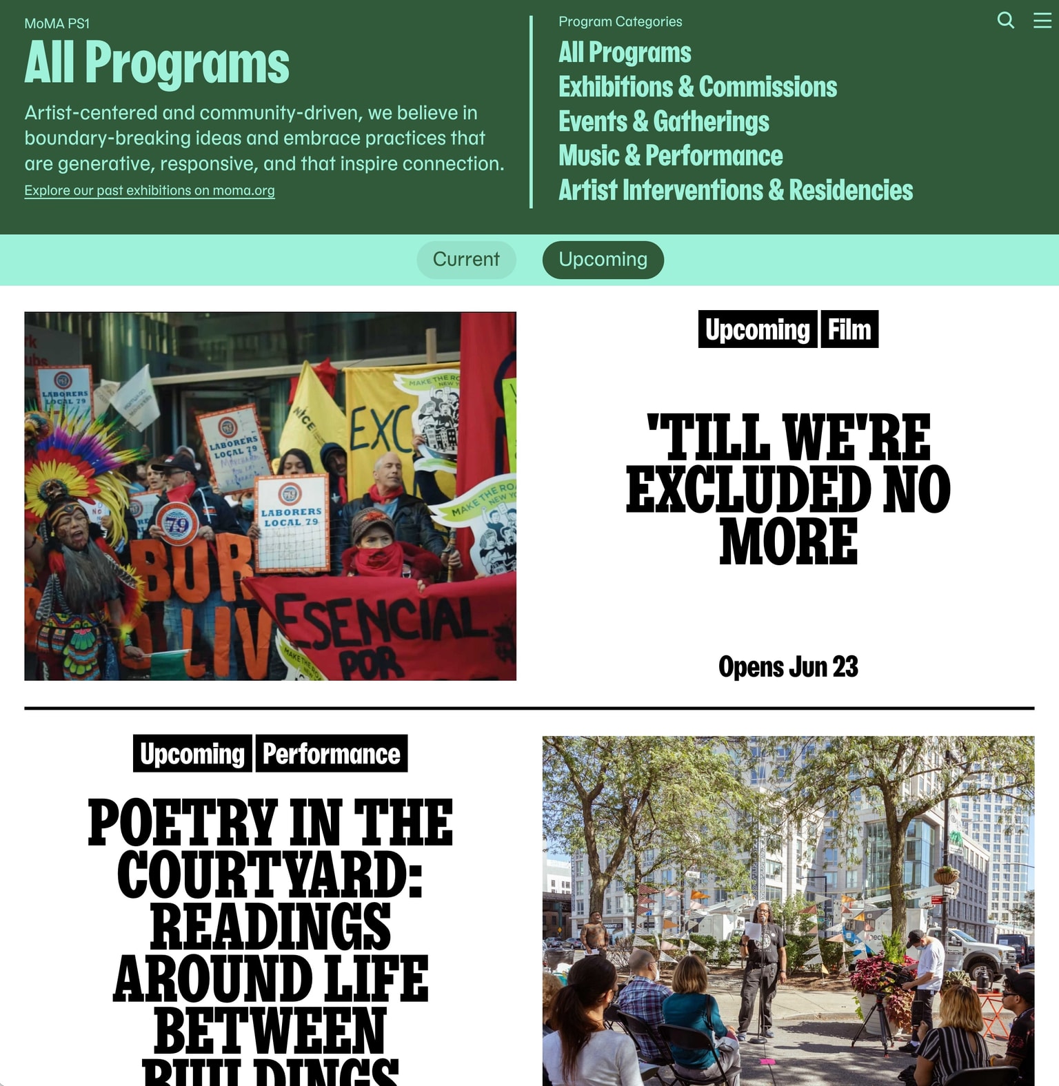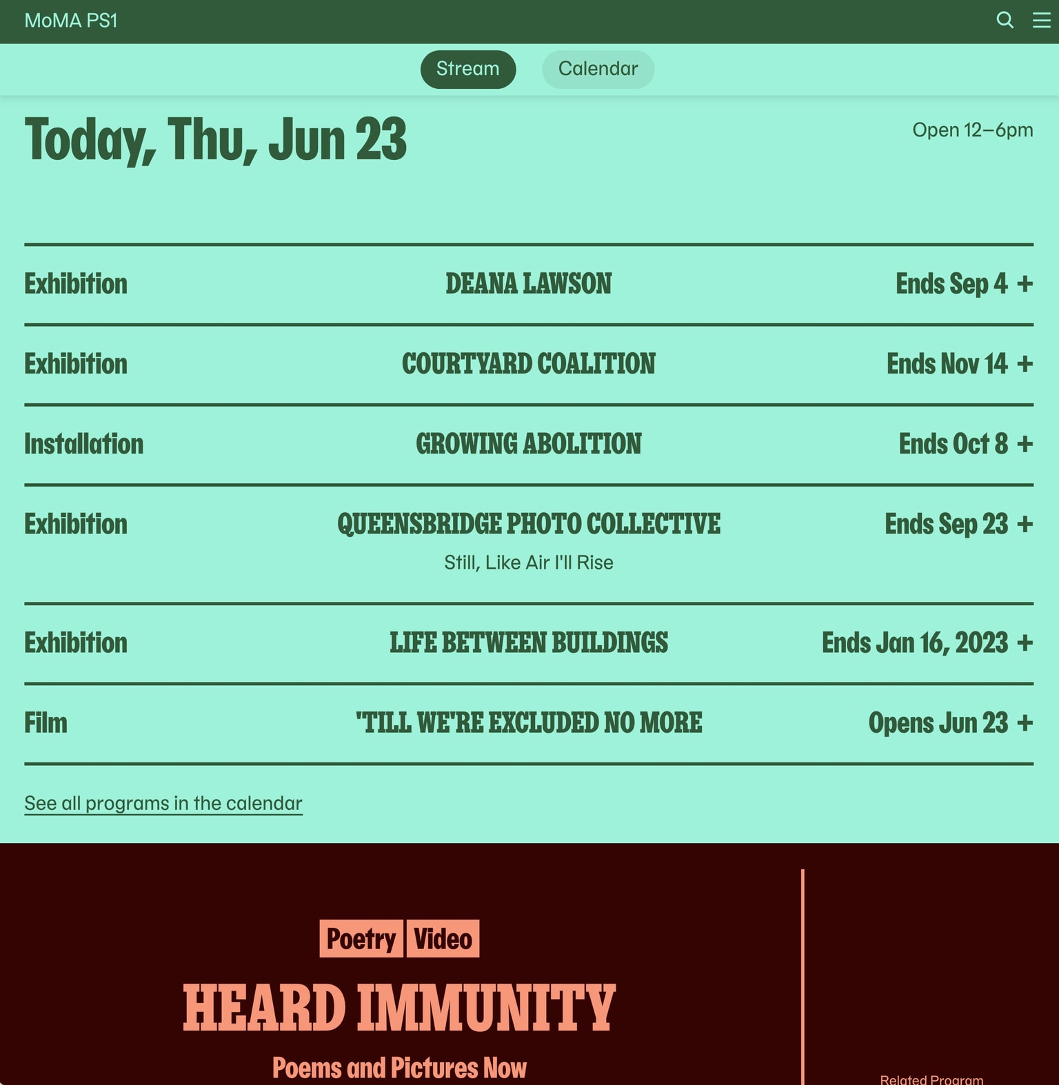 www.momaps1.orgHomepage as an endless stream for amplifying artists and community voices.