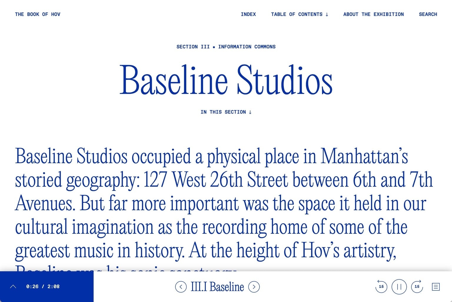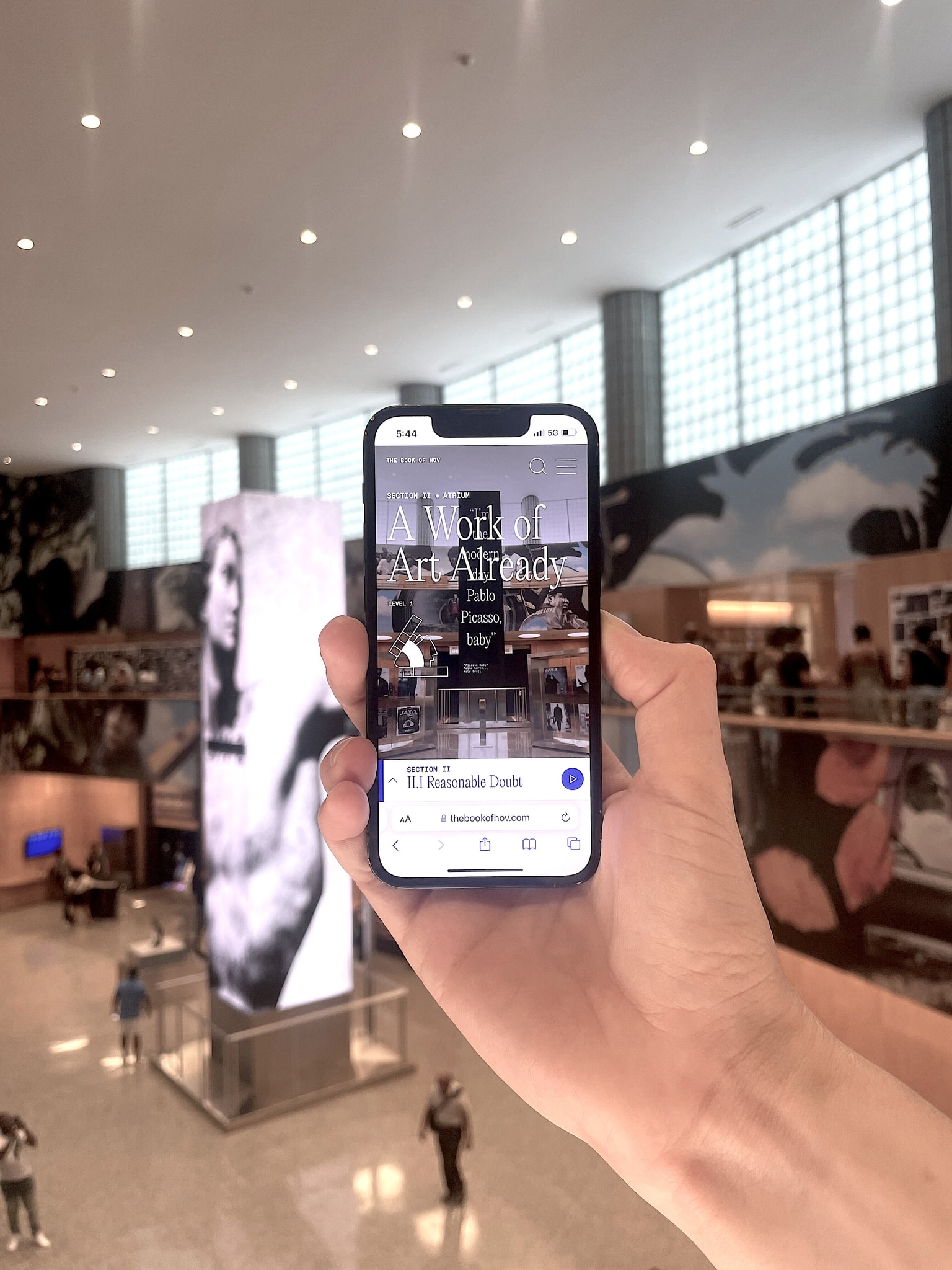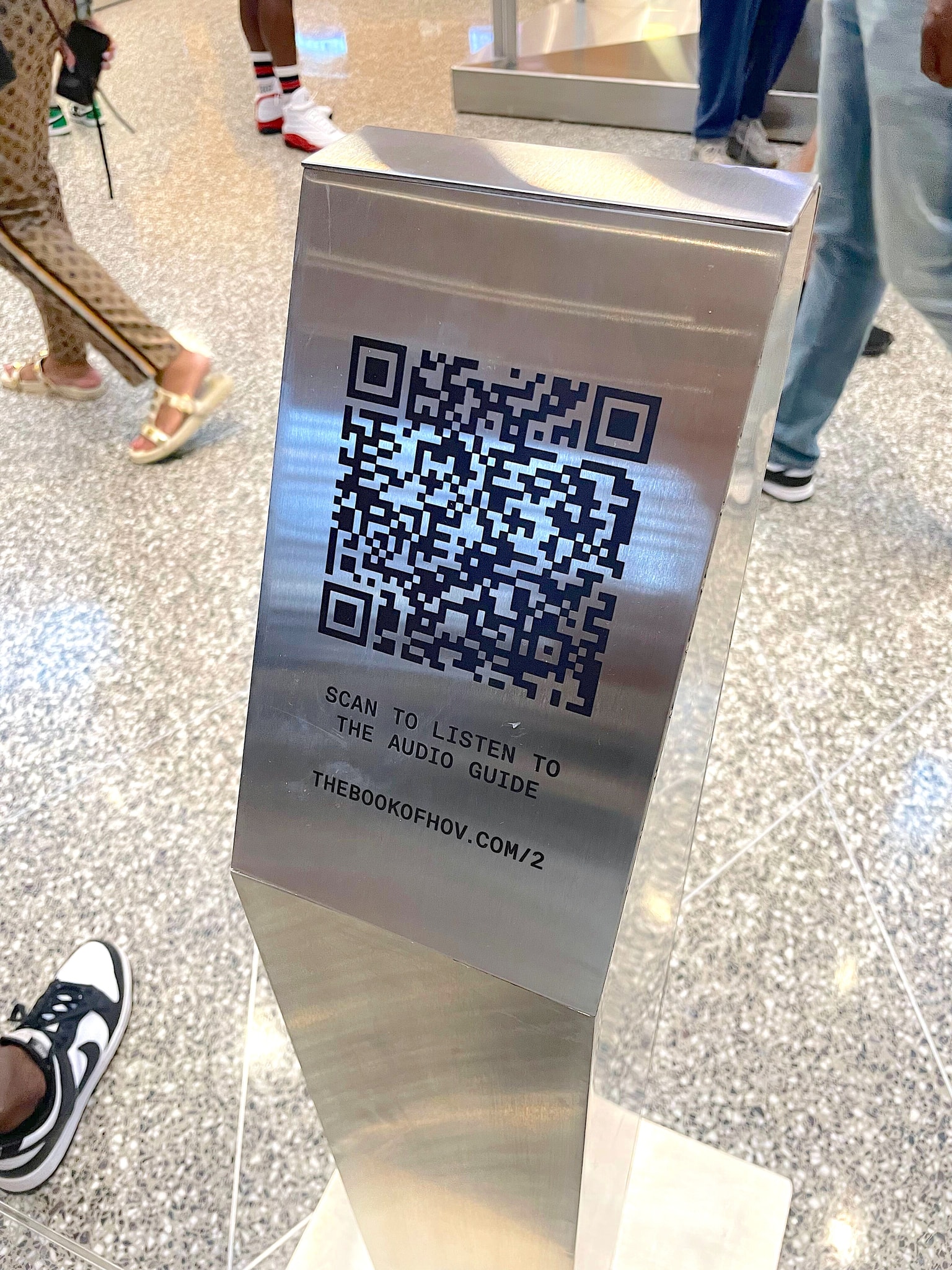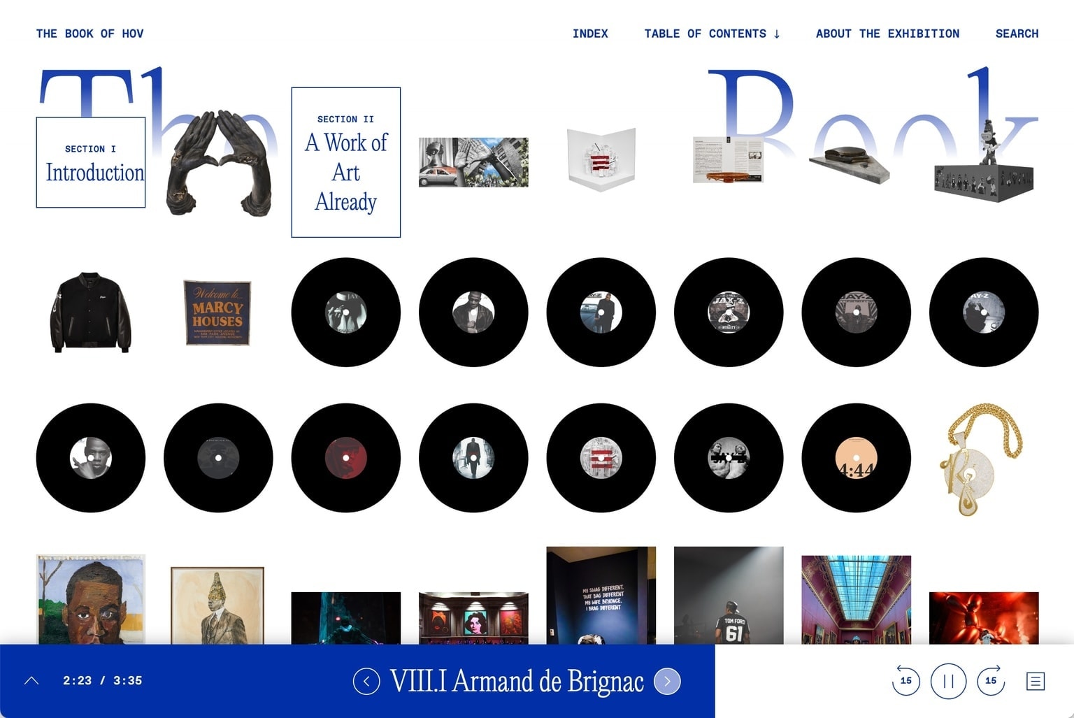 For remote audiences, the desktop version provides an index-style overview, allowing people to jump directly to exhibition sections and browse objects from home. Pitchfork described the digital layer: “On The Book of HOV’s website, you can find audio clips, text, and photos of the exhibition, which populates a significant portion of the 352,000-square-foot building.”