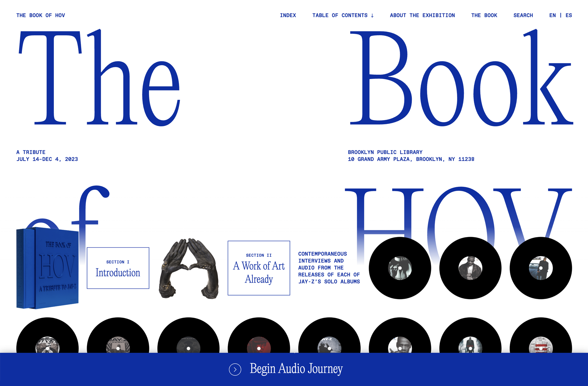 thebookofhov.comA Webby-winning digital guide for JAY-Z’s complete takeover of the Brooklyn Public Library. The platform helped turn the branch into one of the city’s most visited cultural destinations, drawing more than 600,000 visitors in three months.