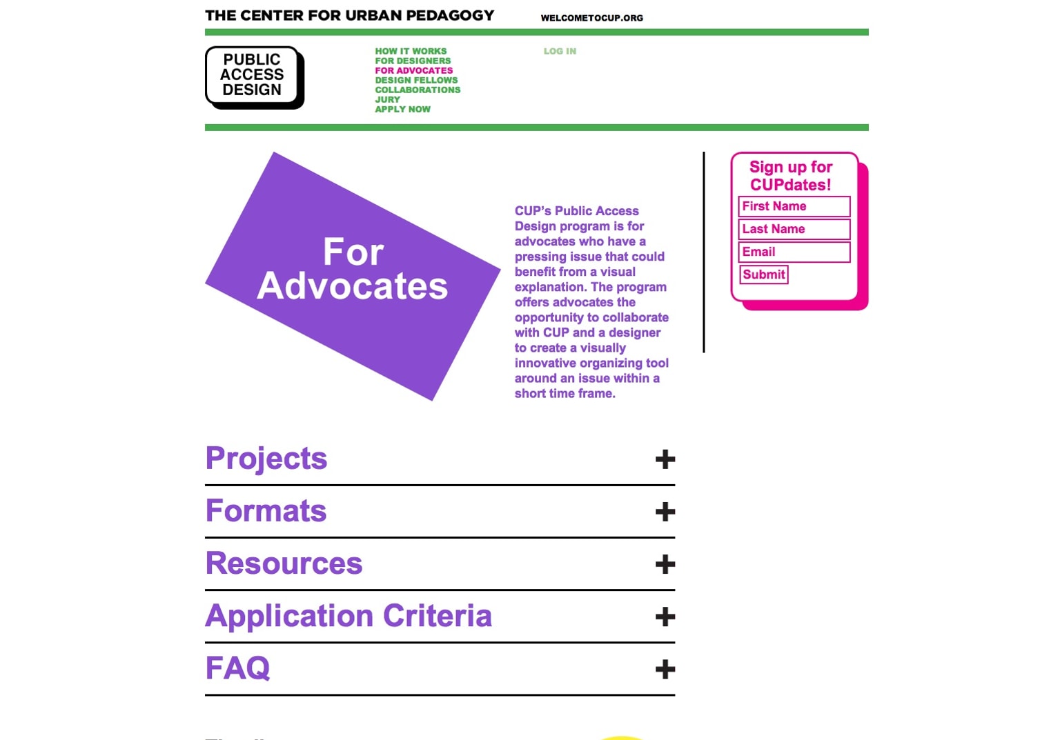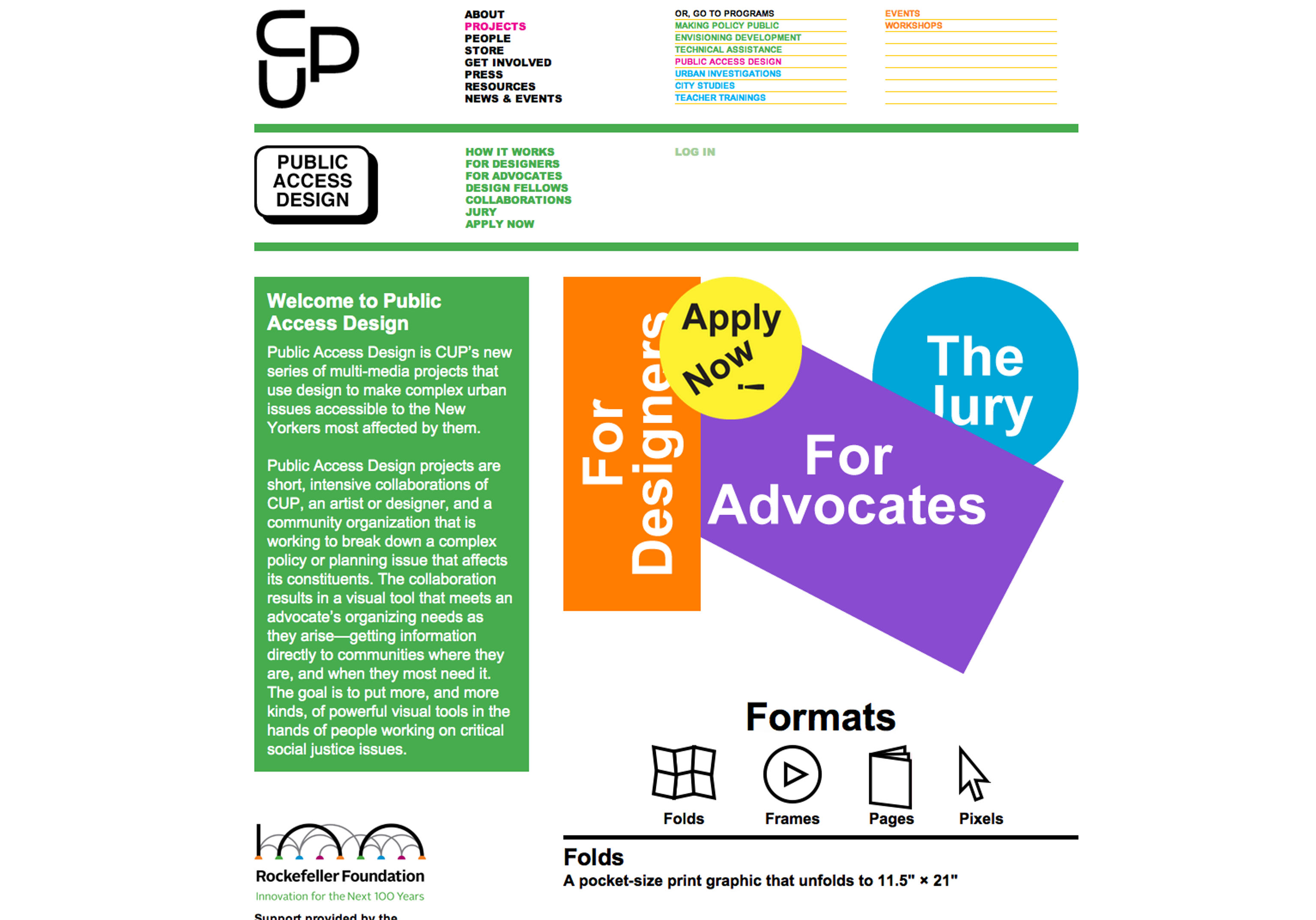The Public Access Design website is integrated into CUP’s main website, which we developed several months prior in 2012.