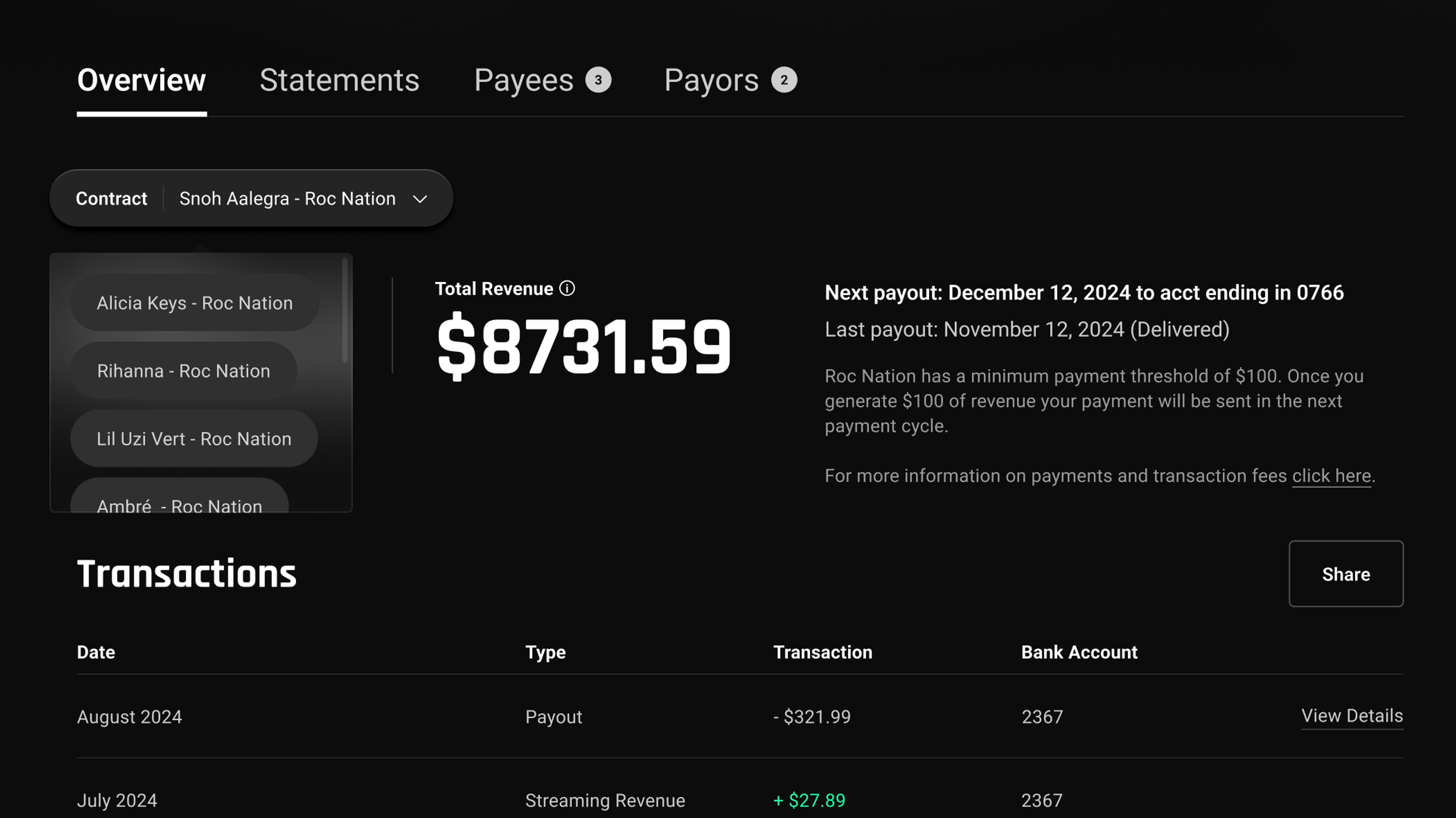 - Royalty payouts and collaborator splits
