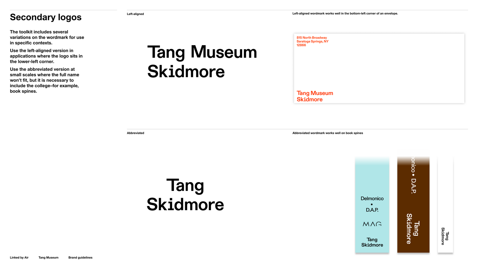 The identity has two main elements: a wordmark, with a version for each name of the museum; and the dingbat, an abstracted diagram of the building....