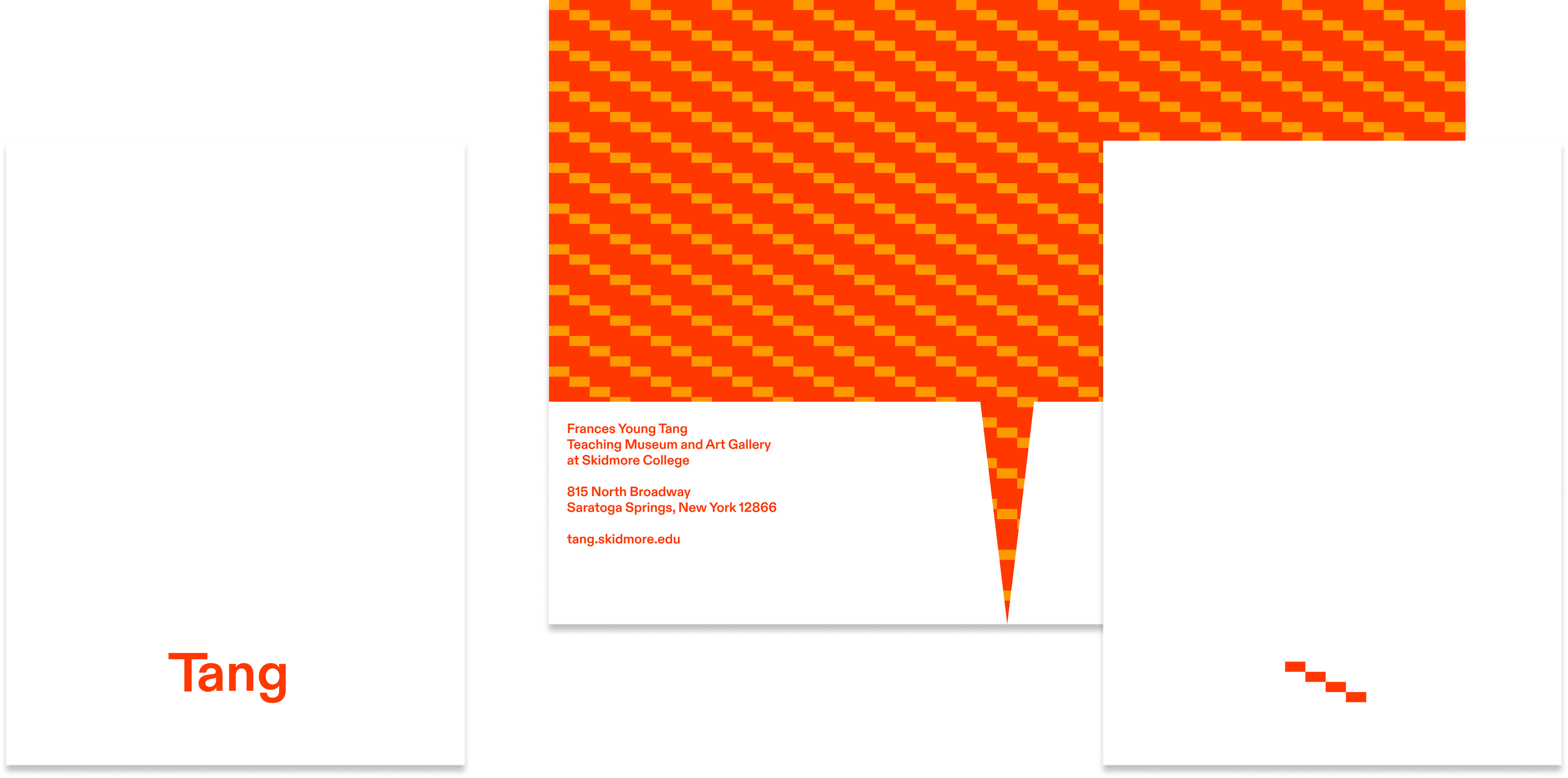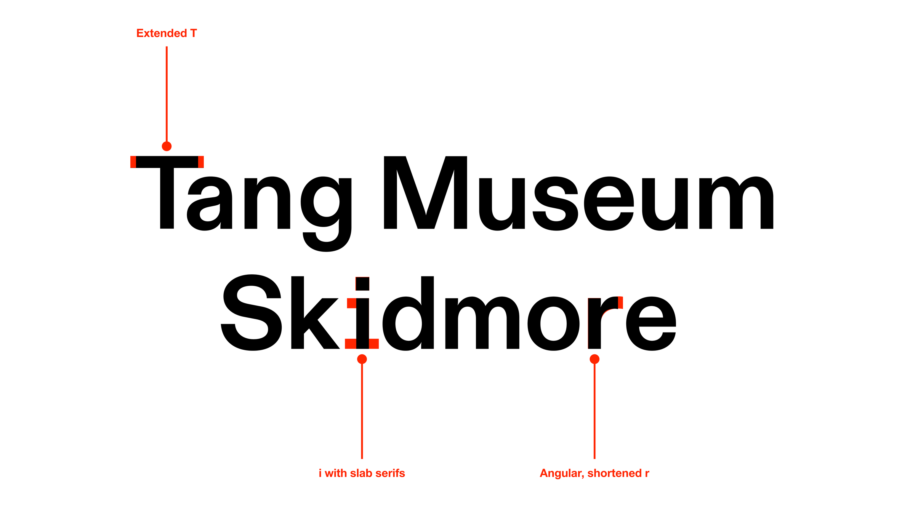The Tang identity is inspired by the building, which is made of concrete blocks, and has stairways that go up, over, and through the space.