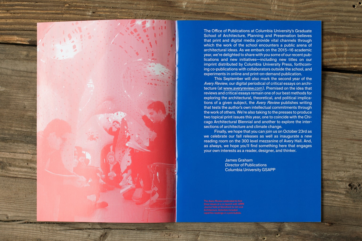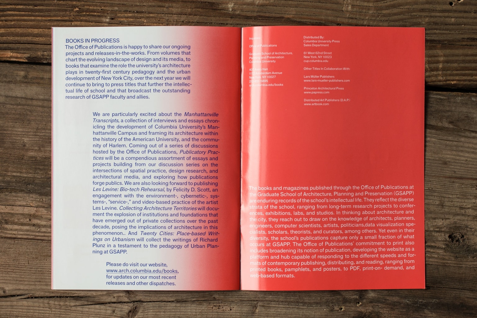 The 2015/16 catalog for Columbia Books on Architecture and the City was something of a teaser for the new website and identity released later in the year. The notion of the ☒ logo (or “placeholder”) as well as the seasonal duotone color palette were introduced with this little catalog.