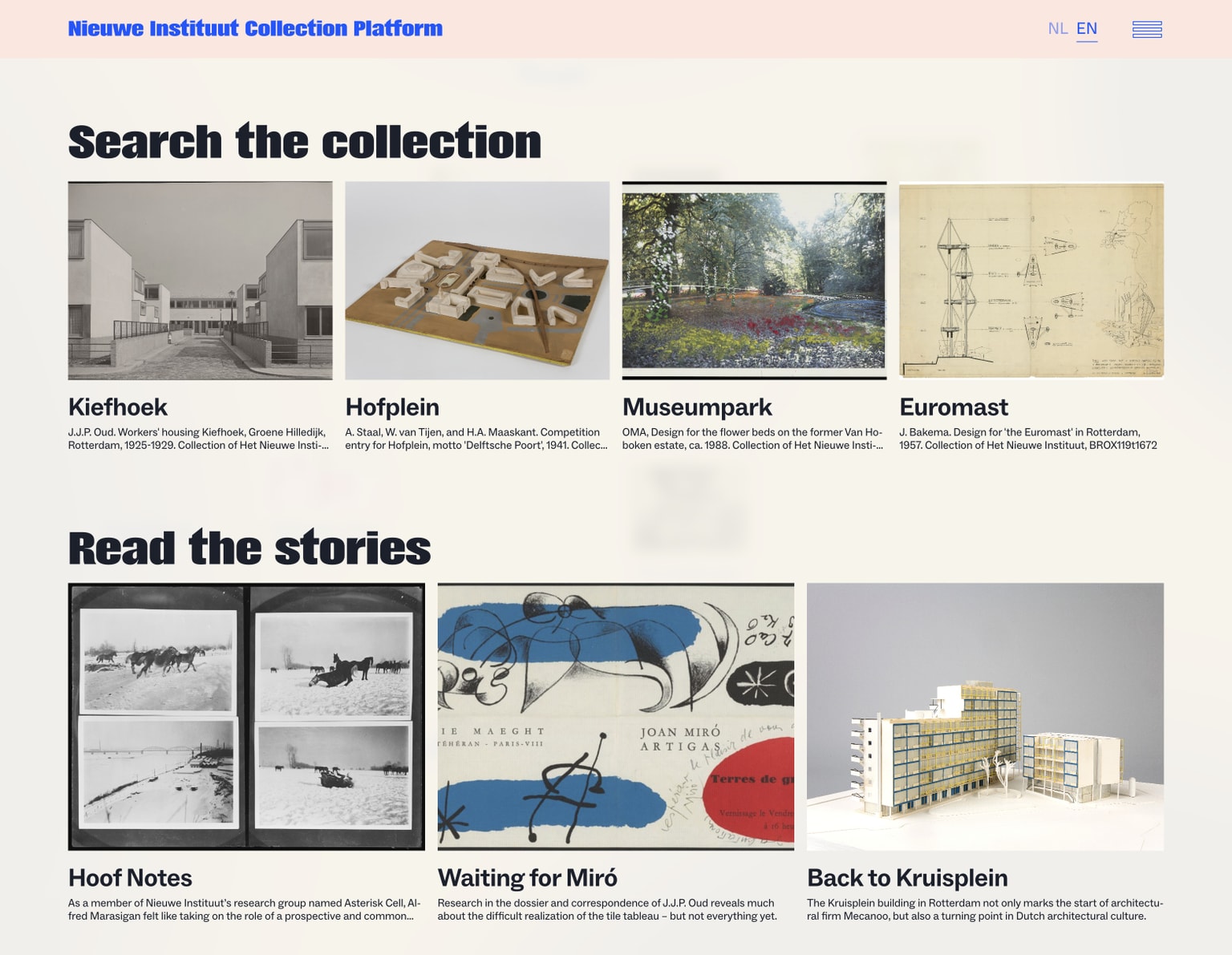 We worked with Nieuwe Instituut to design their collection platform, a new way to explore the National Collection for Dutch Architecture and Urban Planning. The platform treats over a million records as a living system rather than a static archive, allowing users to move intuitively among people, objects, and ideas.
