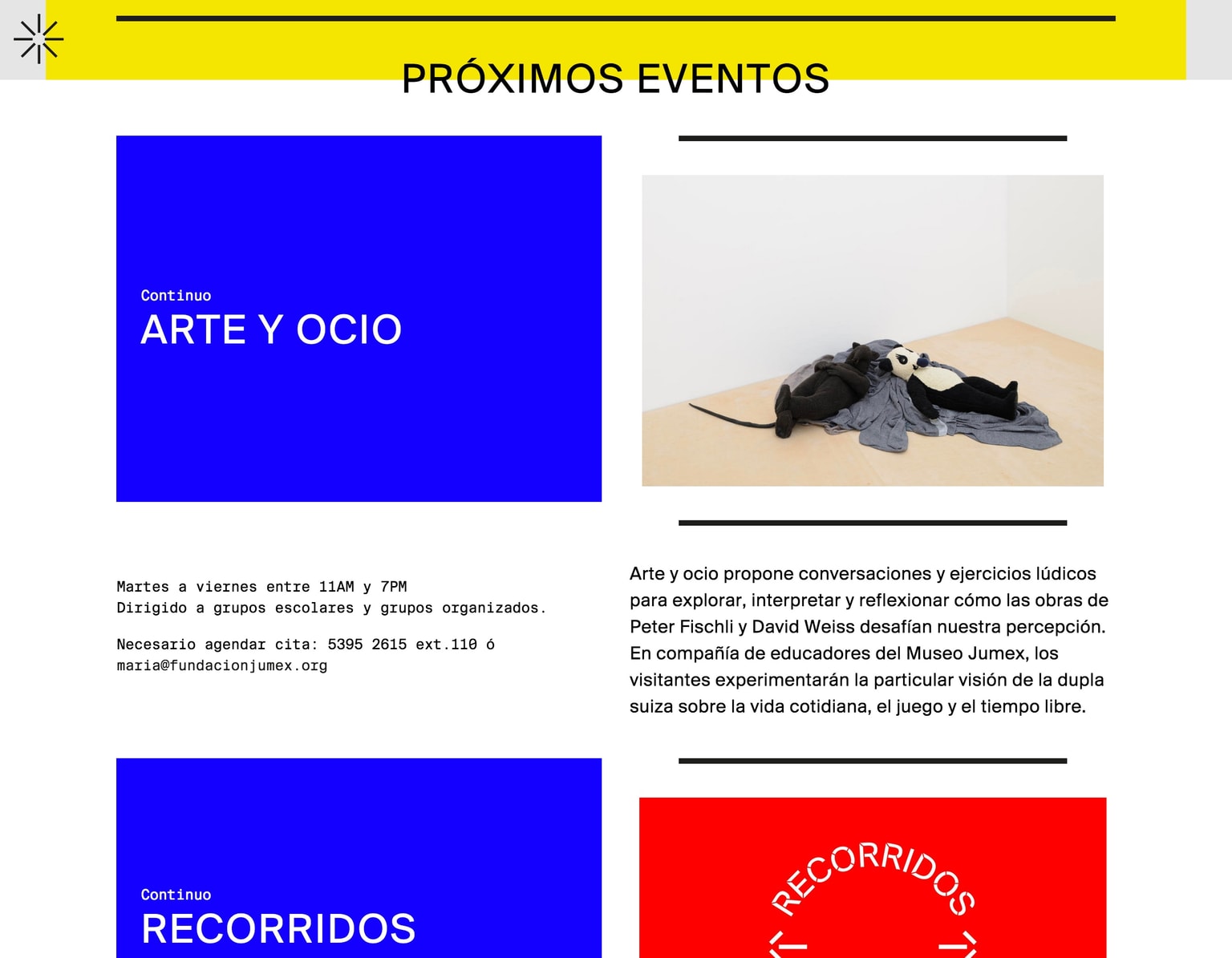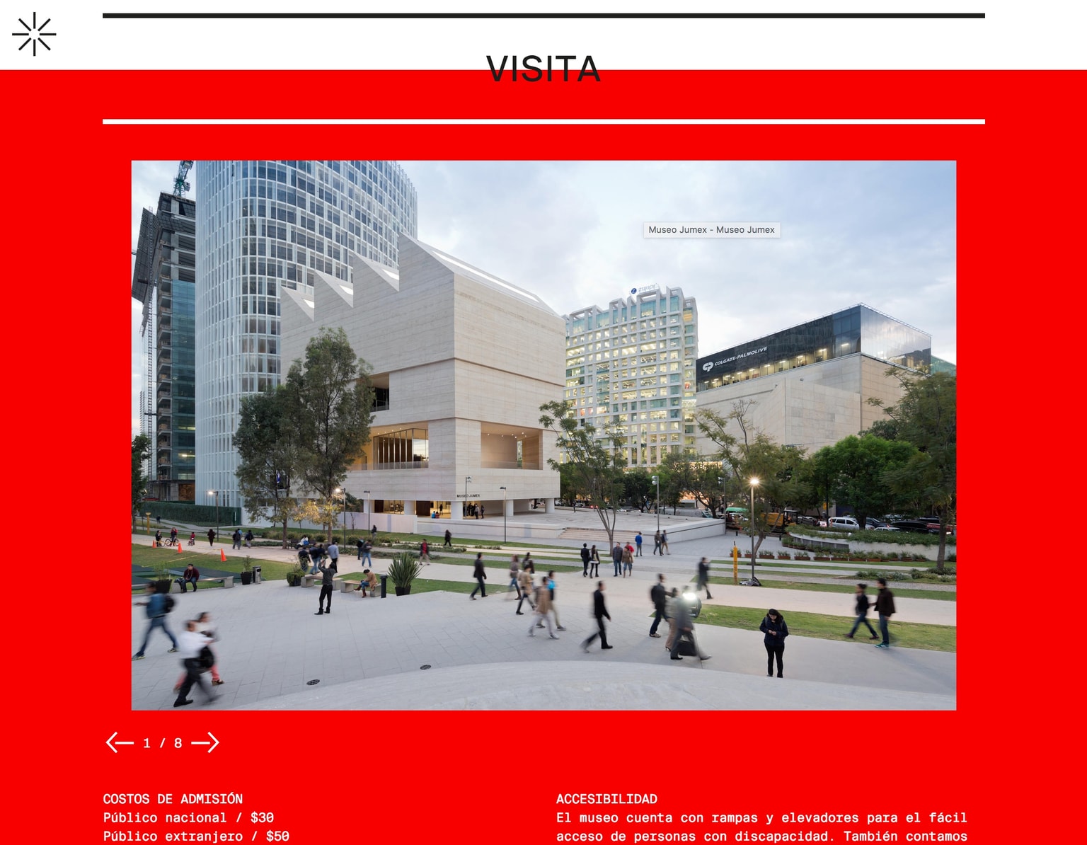 Museo Jumex in Mexico City is the largest contemporary art museum in Latin America. Our permanent site will be launching in the fall. This interim site is conceived as a scaffold, in keeping with the provisional status of the site, and has a “light touch” while still providing access to plenty of up-to-date content and events. The site is bilingual.