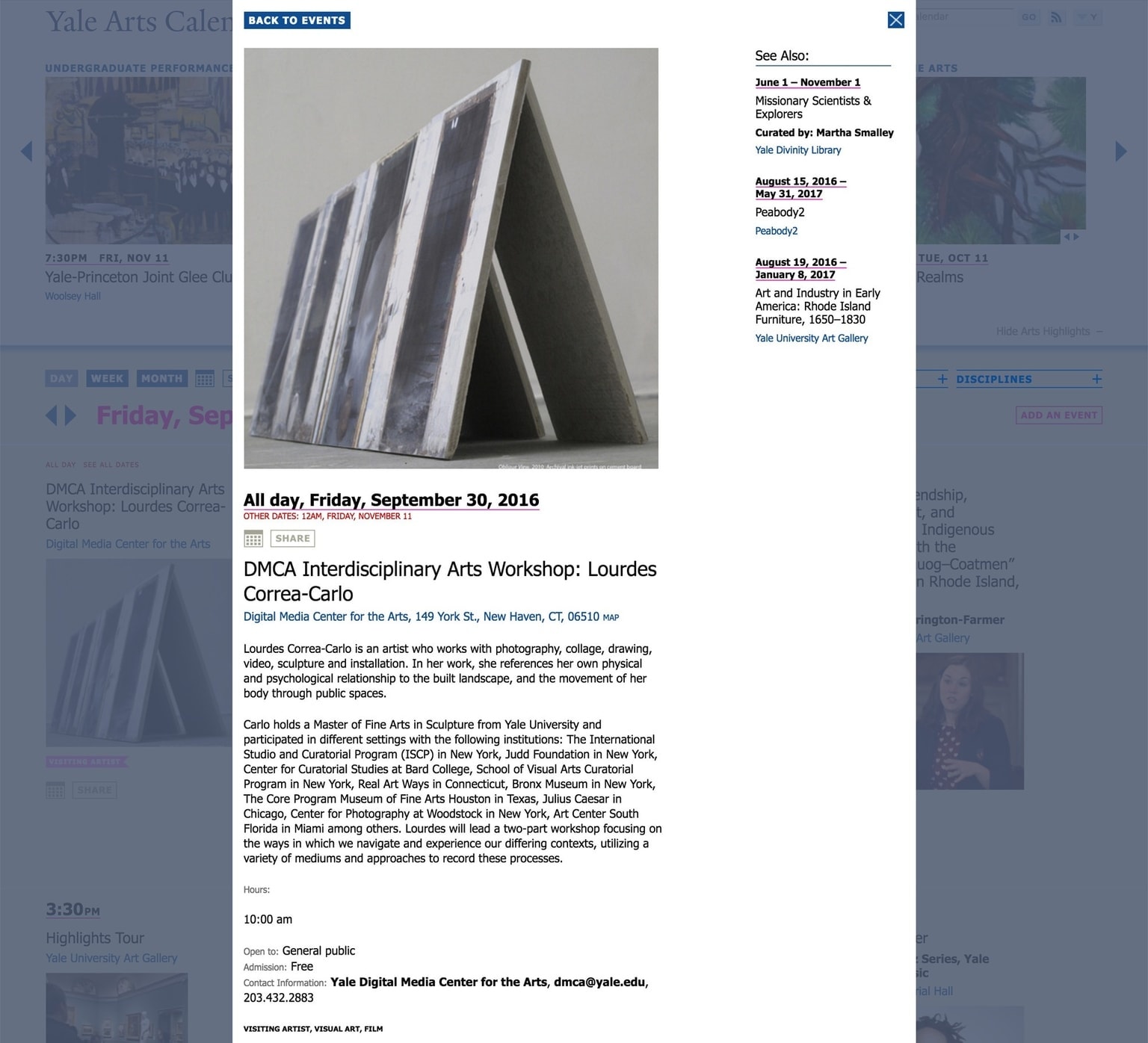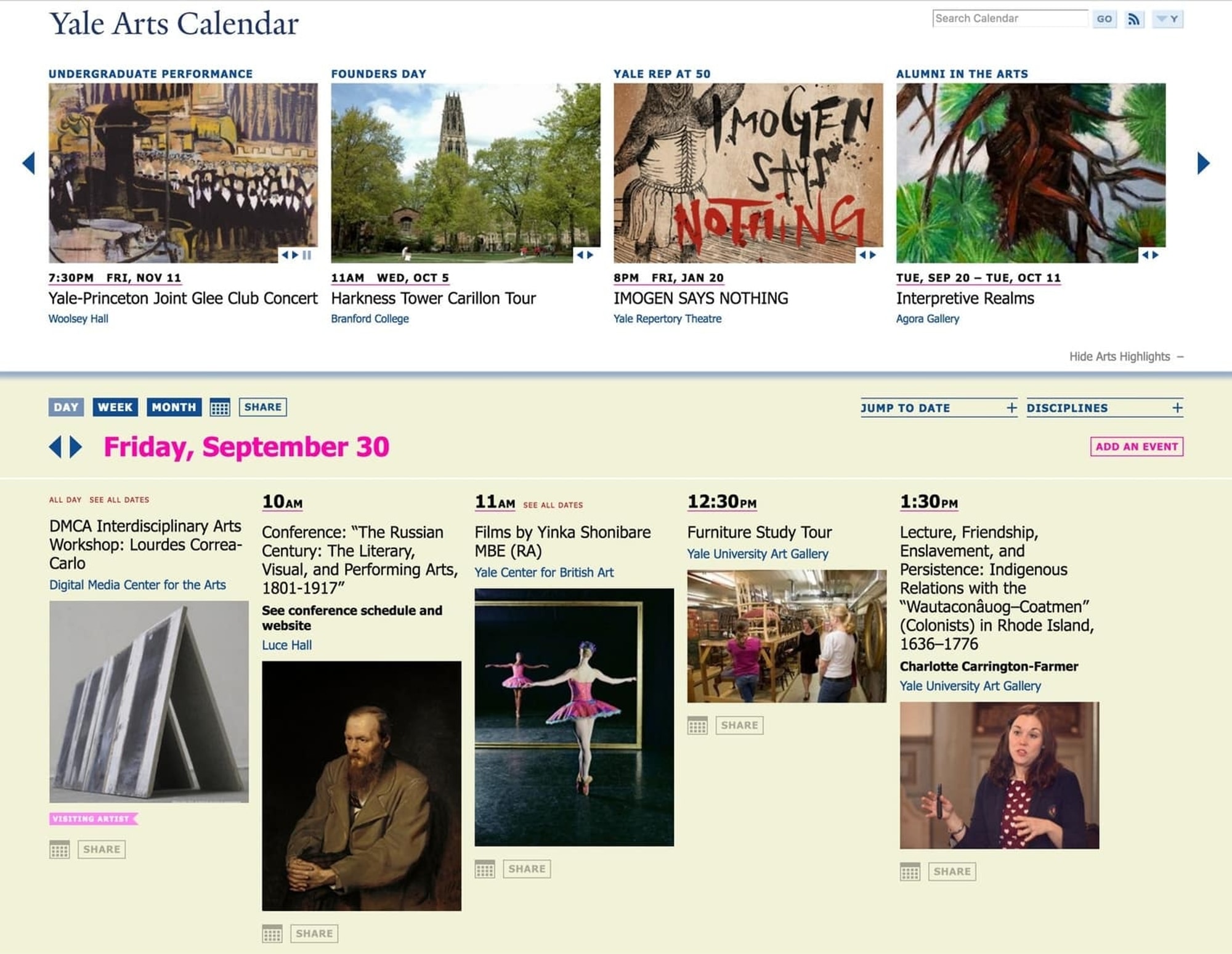 Yale Arts Calendar