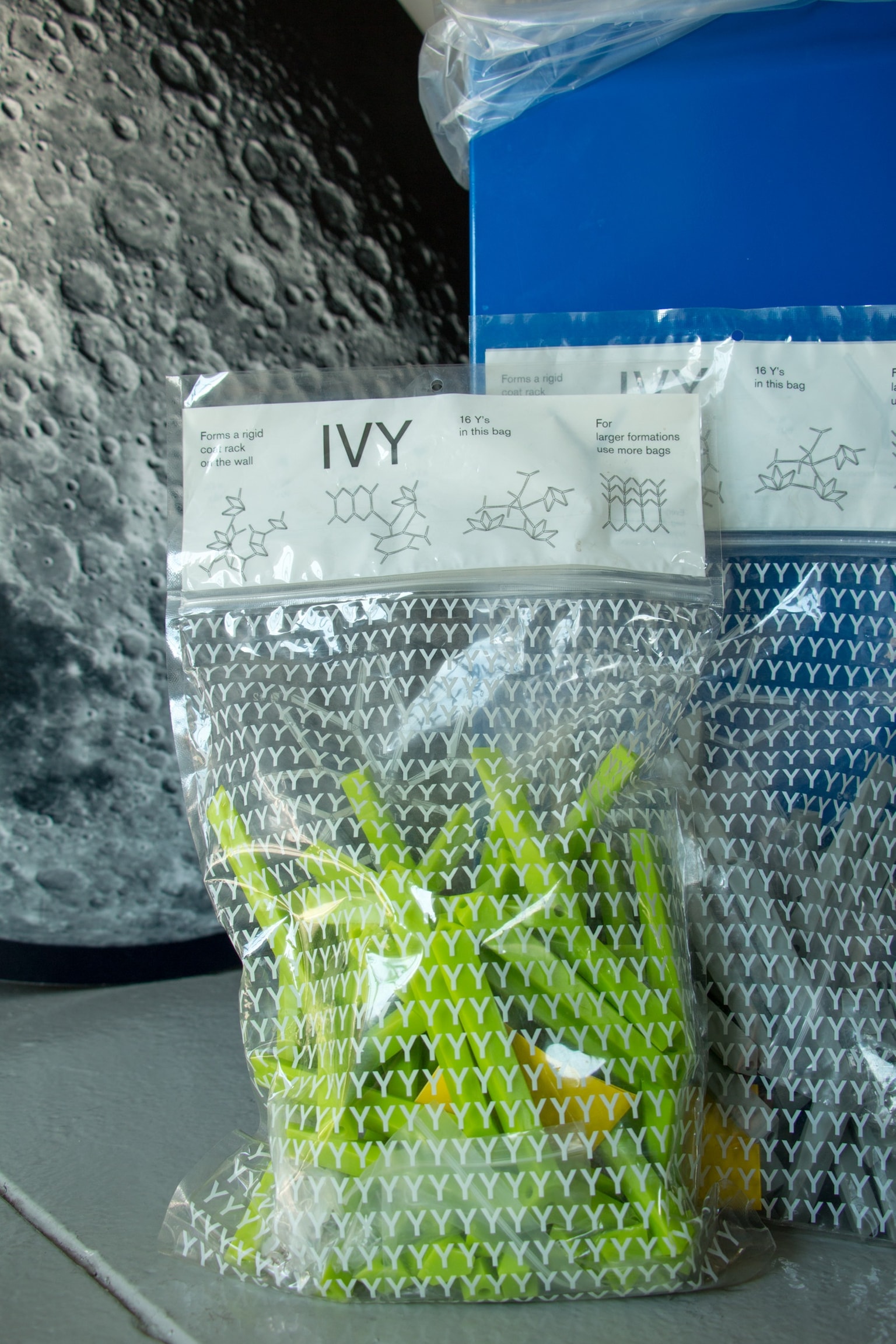 We designed the plastic bag for MOS architect Michael Meredith’s IVY system of coat hooks. They were on sale in the shop at the Cooper Hewitt Design Museum in New York, as a part of the National Design Triennial.
