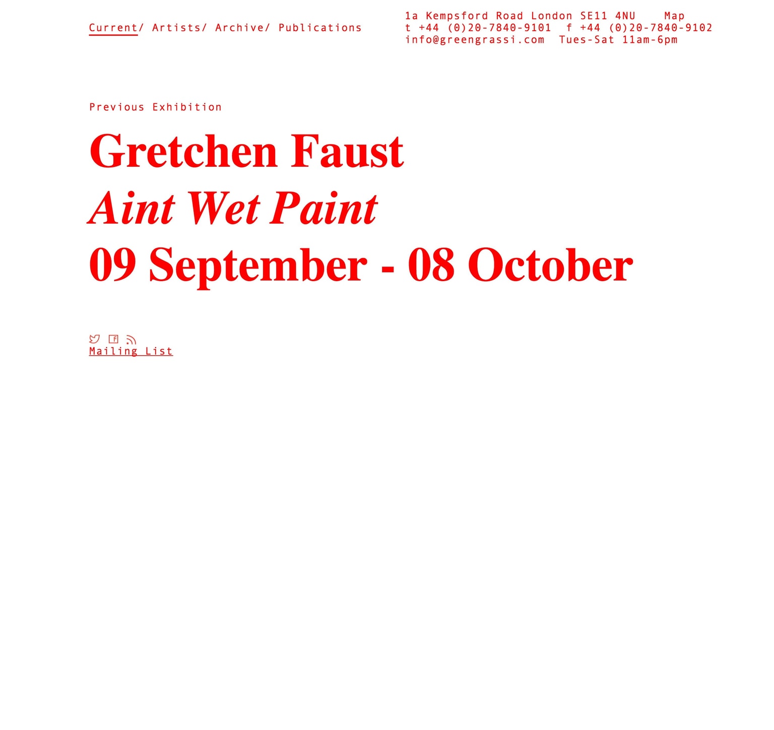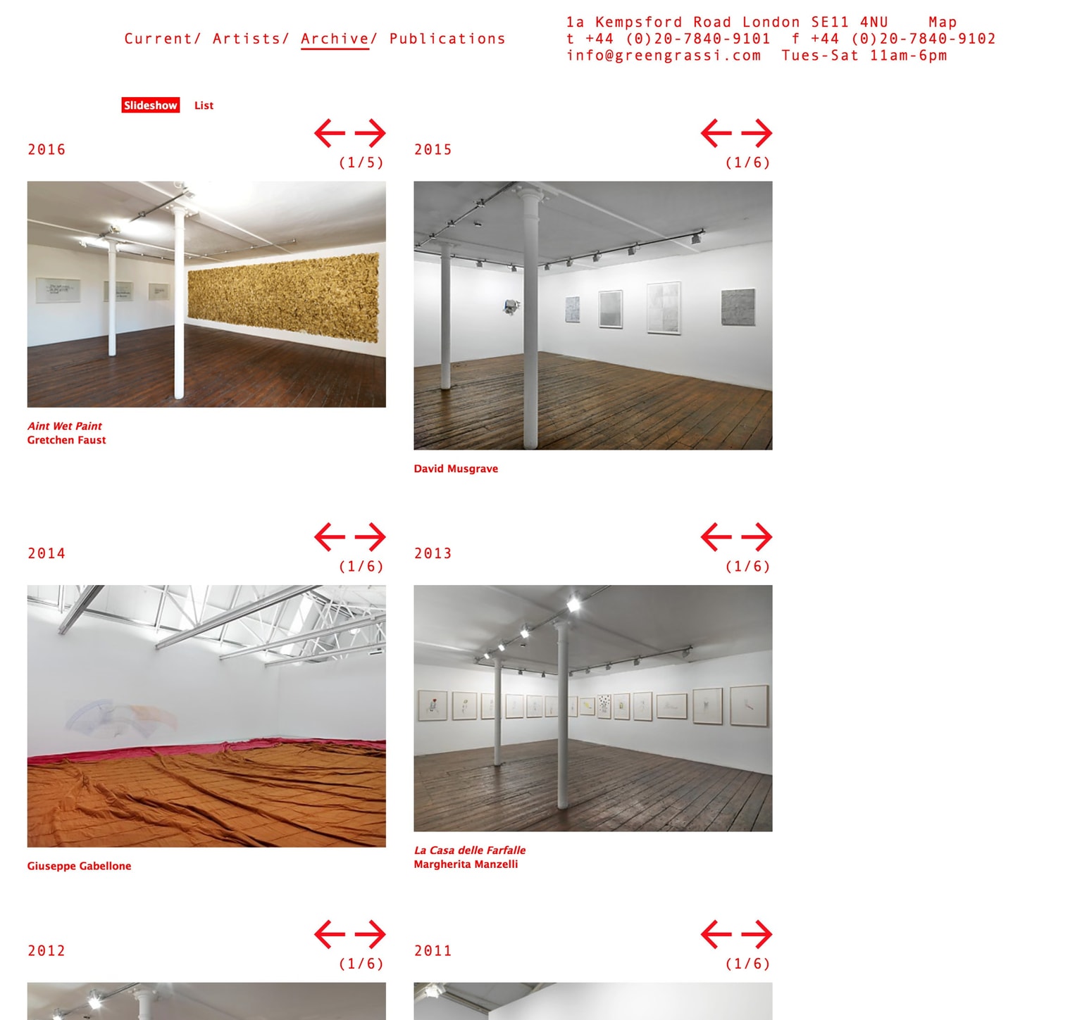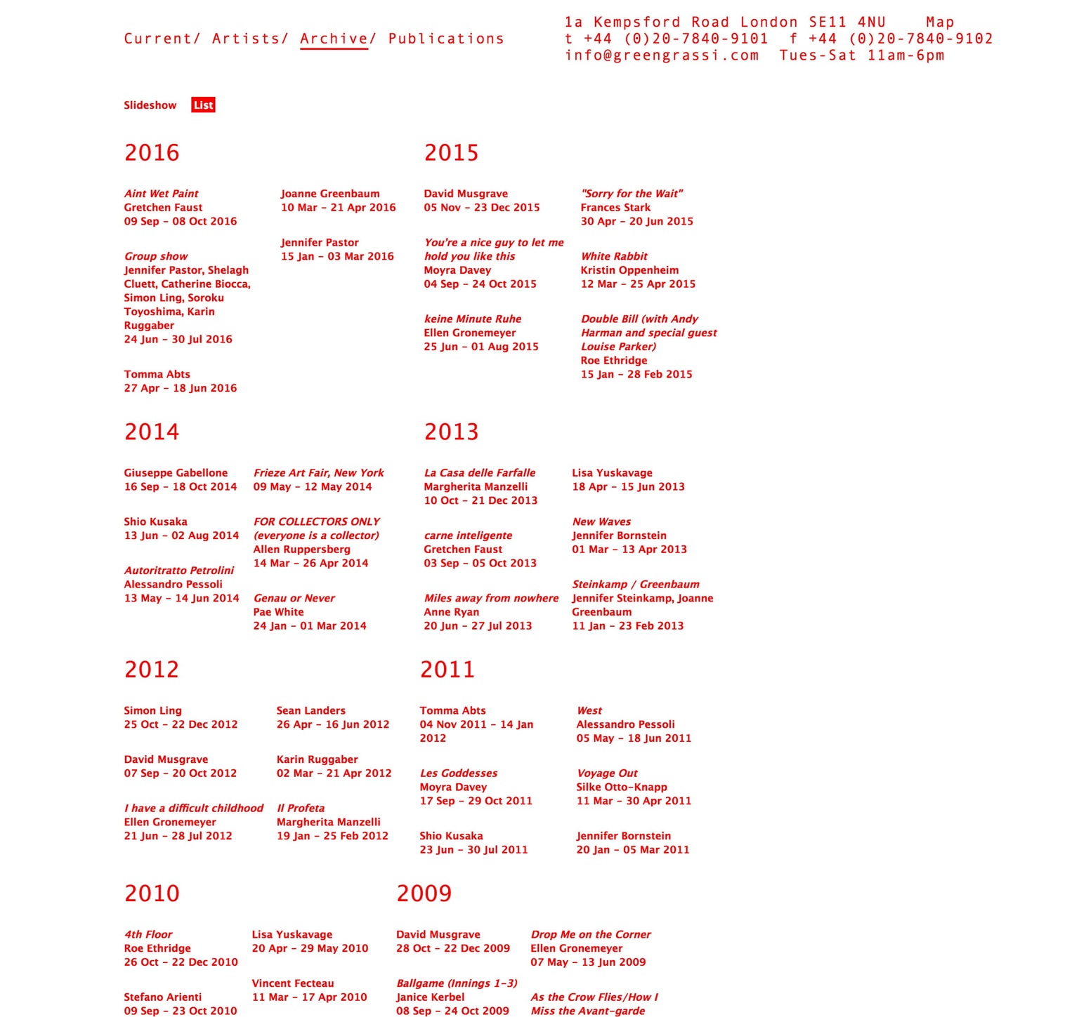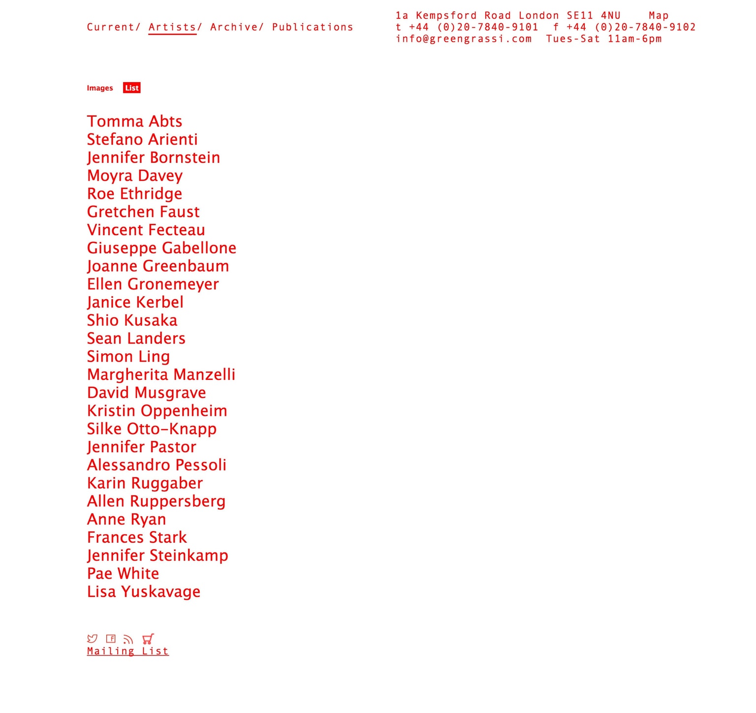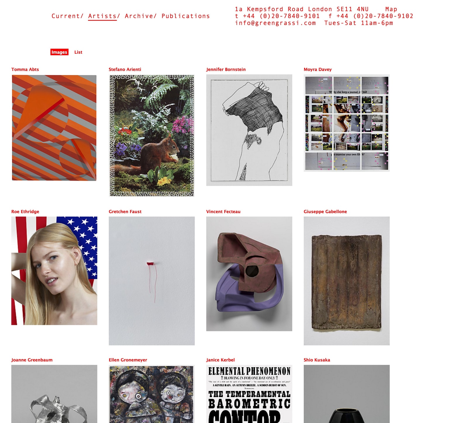 greengrassi.comWebsite for London gallery Greengrassi highlighting current and upcoming exhibitions.