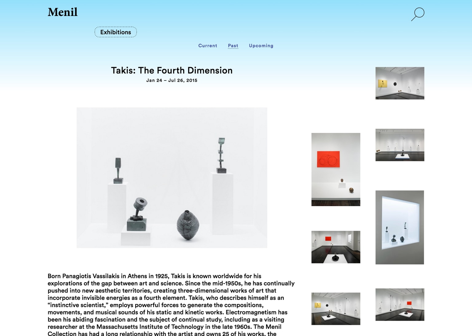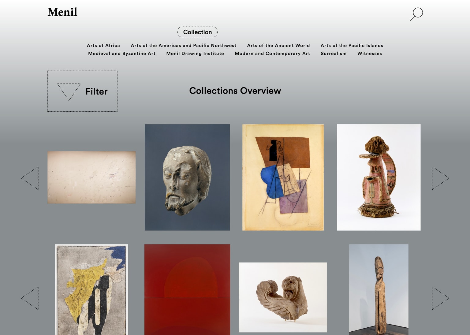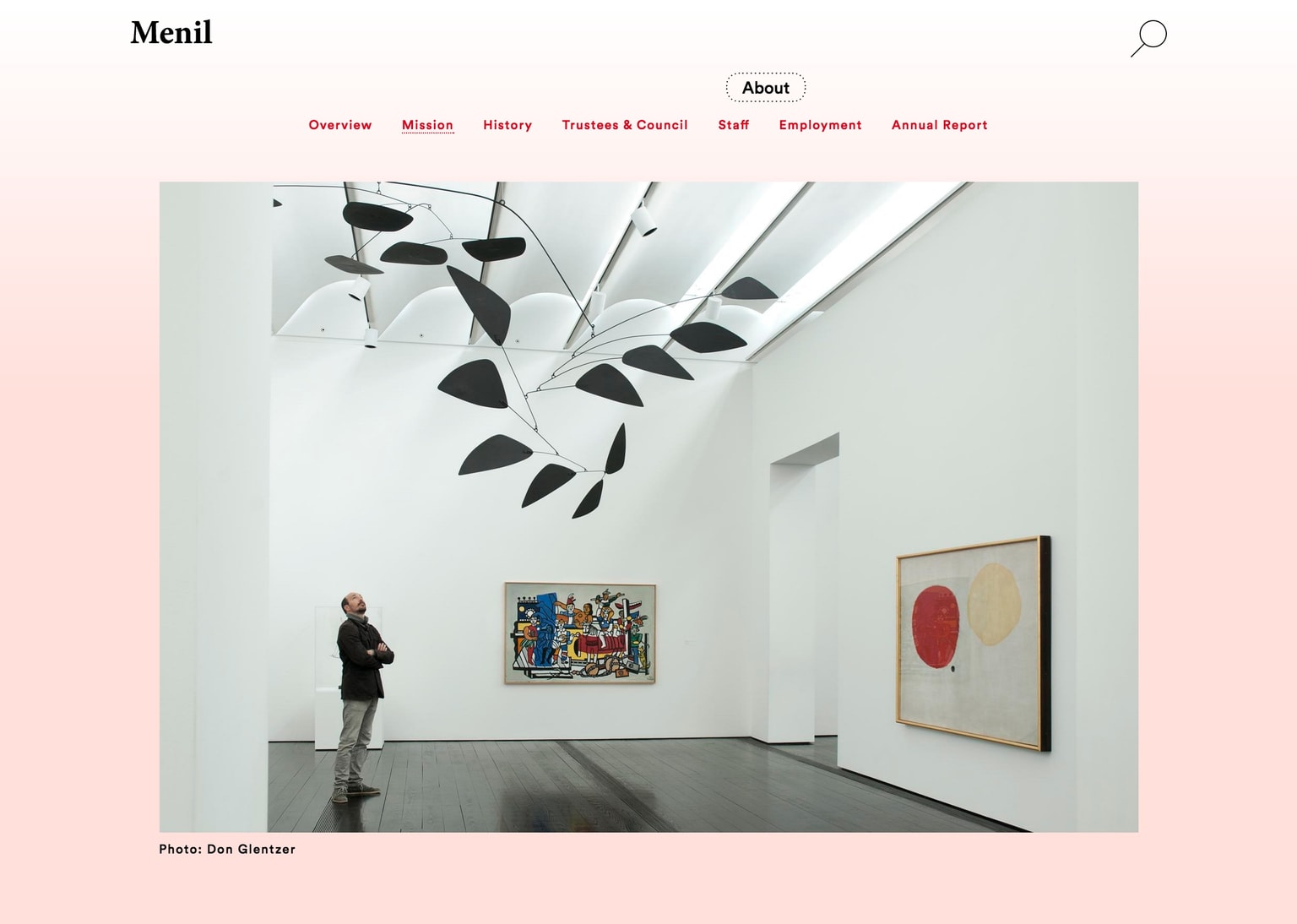 menil.orgWebsite combining theatrical design with sober minimalism.