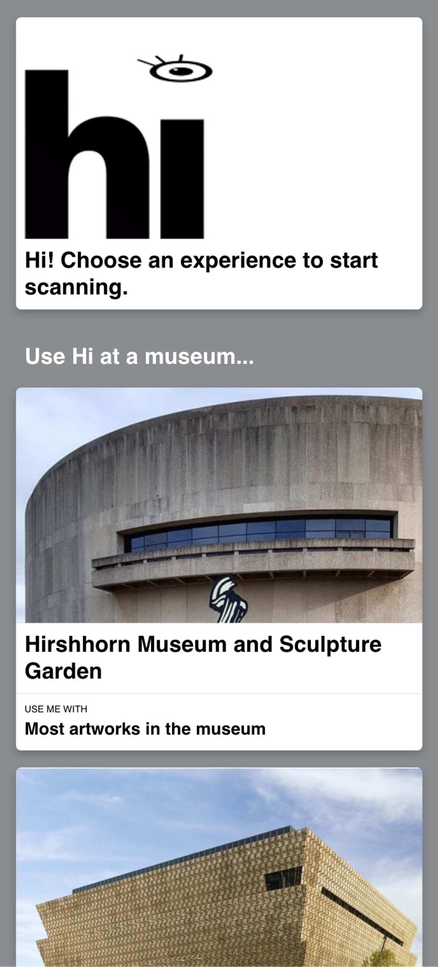 hi.si.eduAn award-winning mobile guide for the Smithsonian’s national museums. The platform uses browser-based image recognition — no app required — to connect visitors directly with artists and curators. It launched at the Hirshhorn Museum and has since expanded to multiple Smithsonian sites.