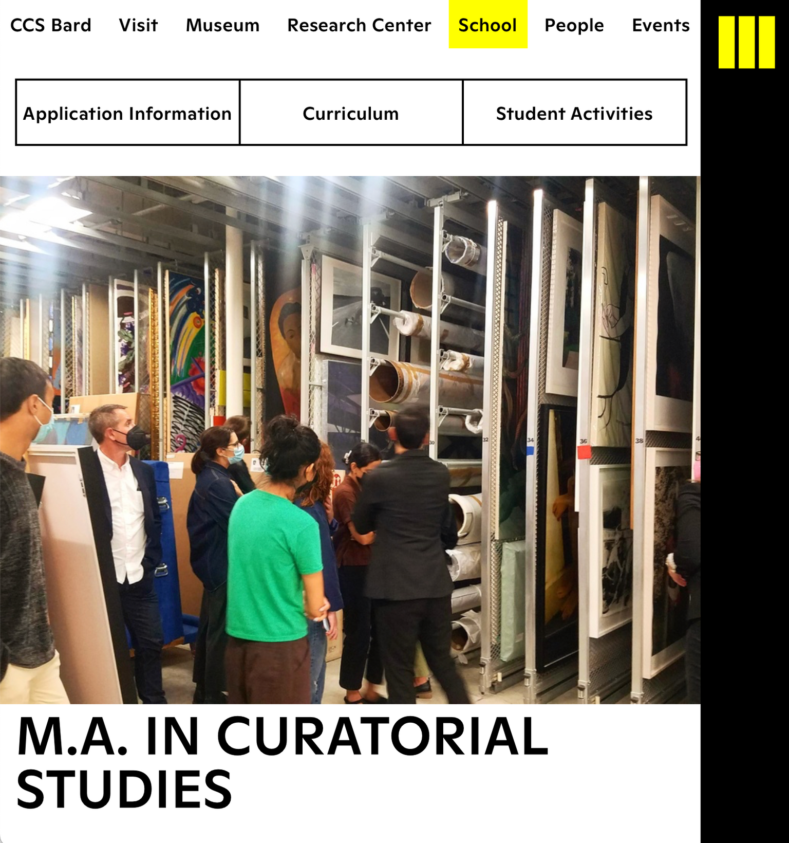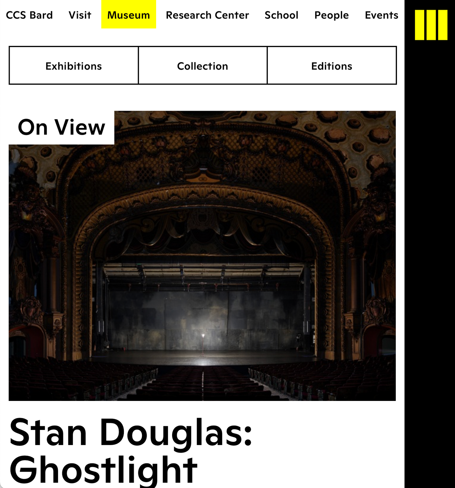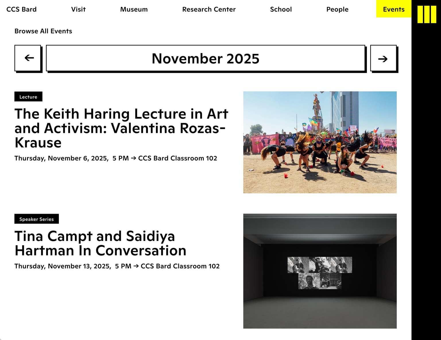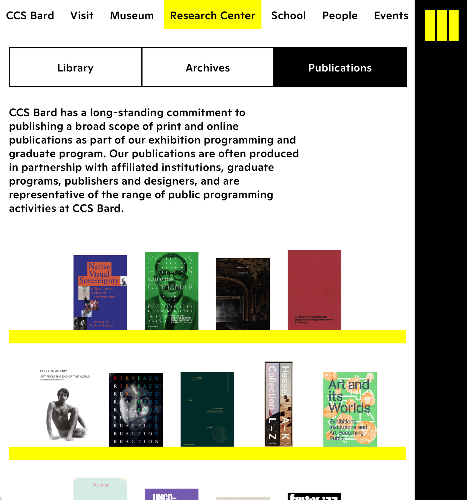 CCS Bard (Center for Curatorial Studies) is a world class contemporary art museum, library, and graduate school, underpinned by growing collections and archives. The new website seeks to highlight the intersections between these different aspects of the institution’s identity while ensuring that different user groups can quickly find information that is relevant to them.