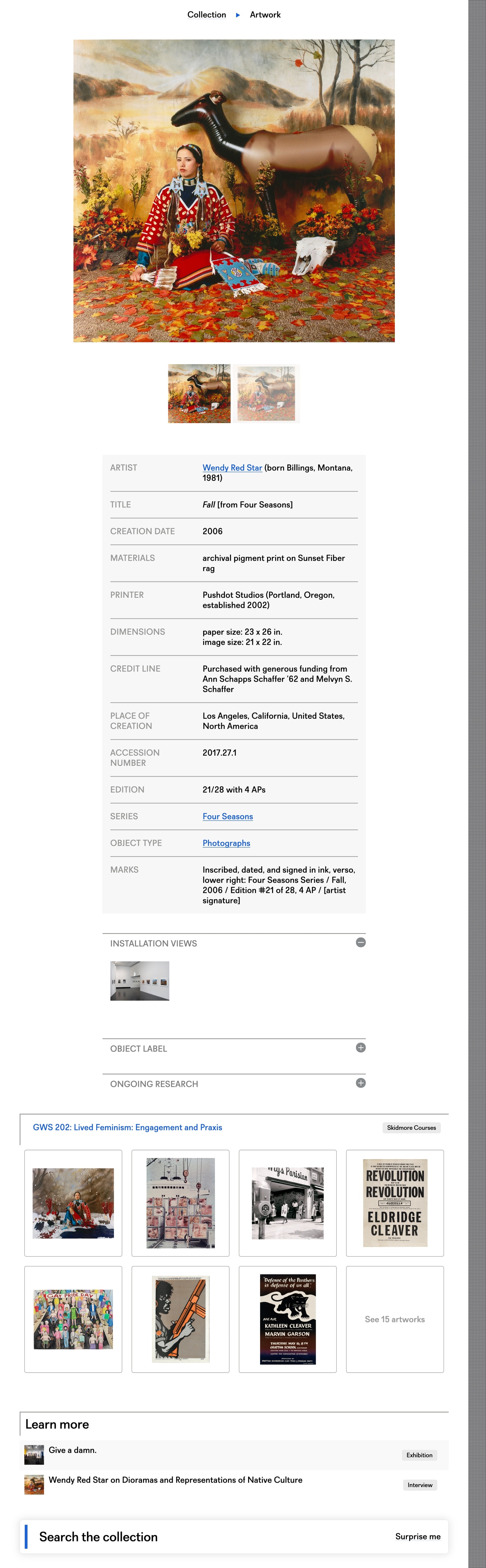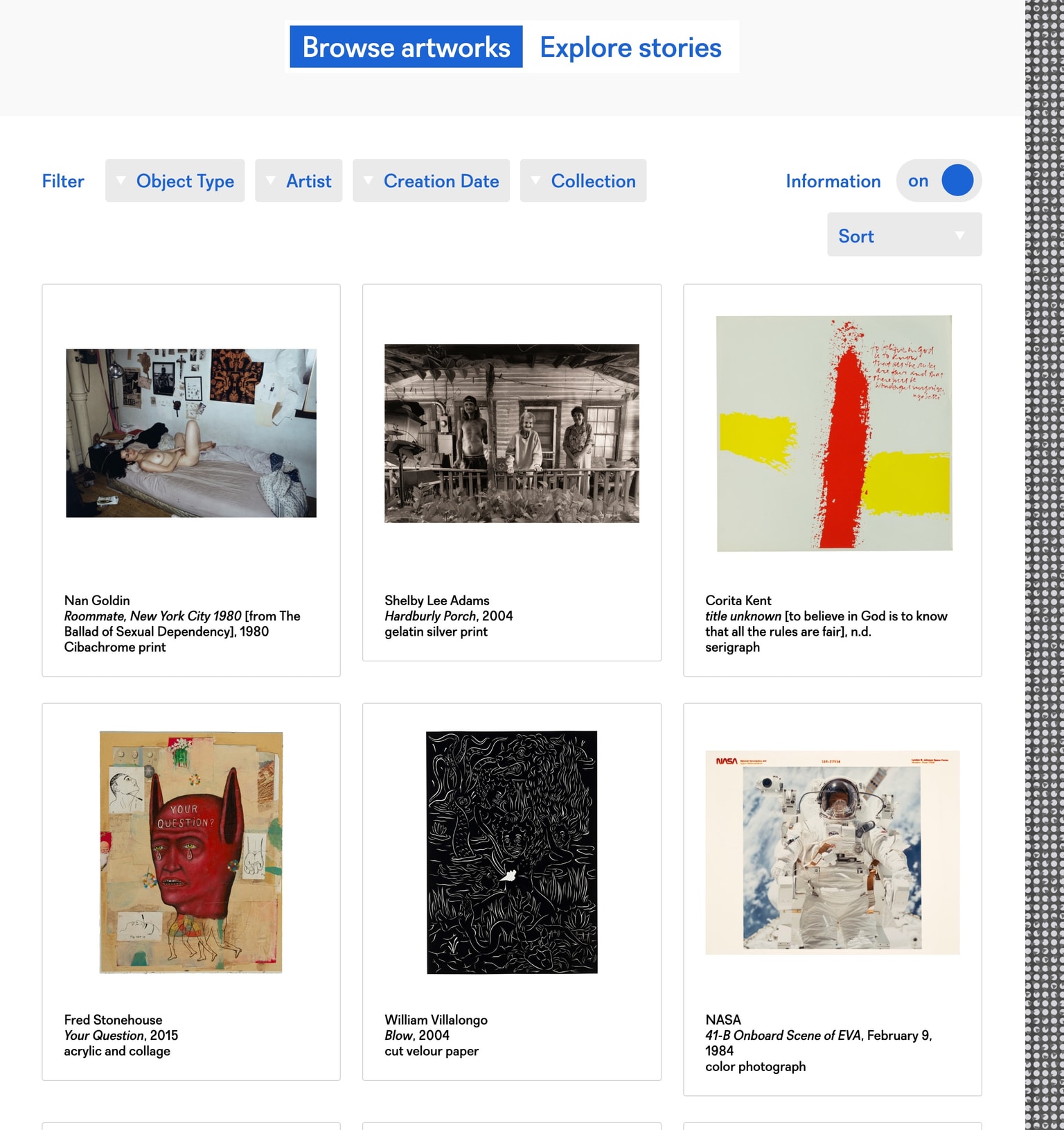 - Linked content tying objects to exhibitions, curriculum, publications, and public programs
