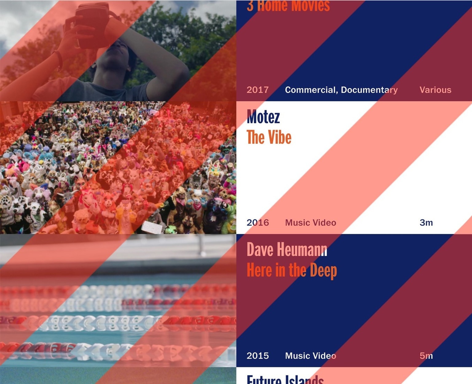 Inspired by the process of sorting through footage at an editing bay, this site for the Brooklyn-based video production studio Captain and the Fox allows visitors to interact with juxtaposed pieces of footage pulled from various portfolio projects.